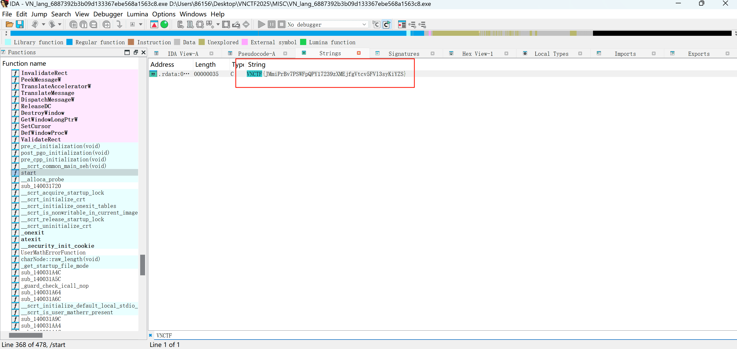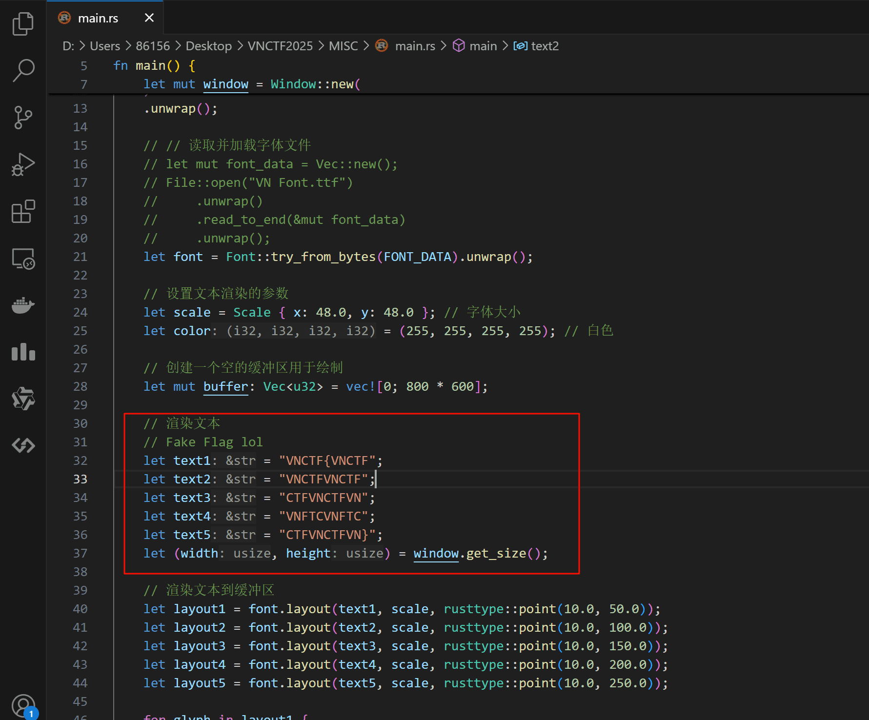 MISC VN_Lang 一个rust代码和一个exe可执行文件,根据题目描述,该exe文件是由rust生成的。
