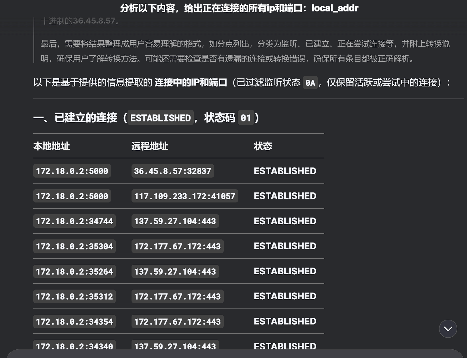 读取/proc/net/tcp可找到ip及端口连接关系: