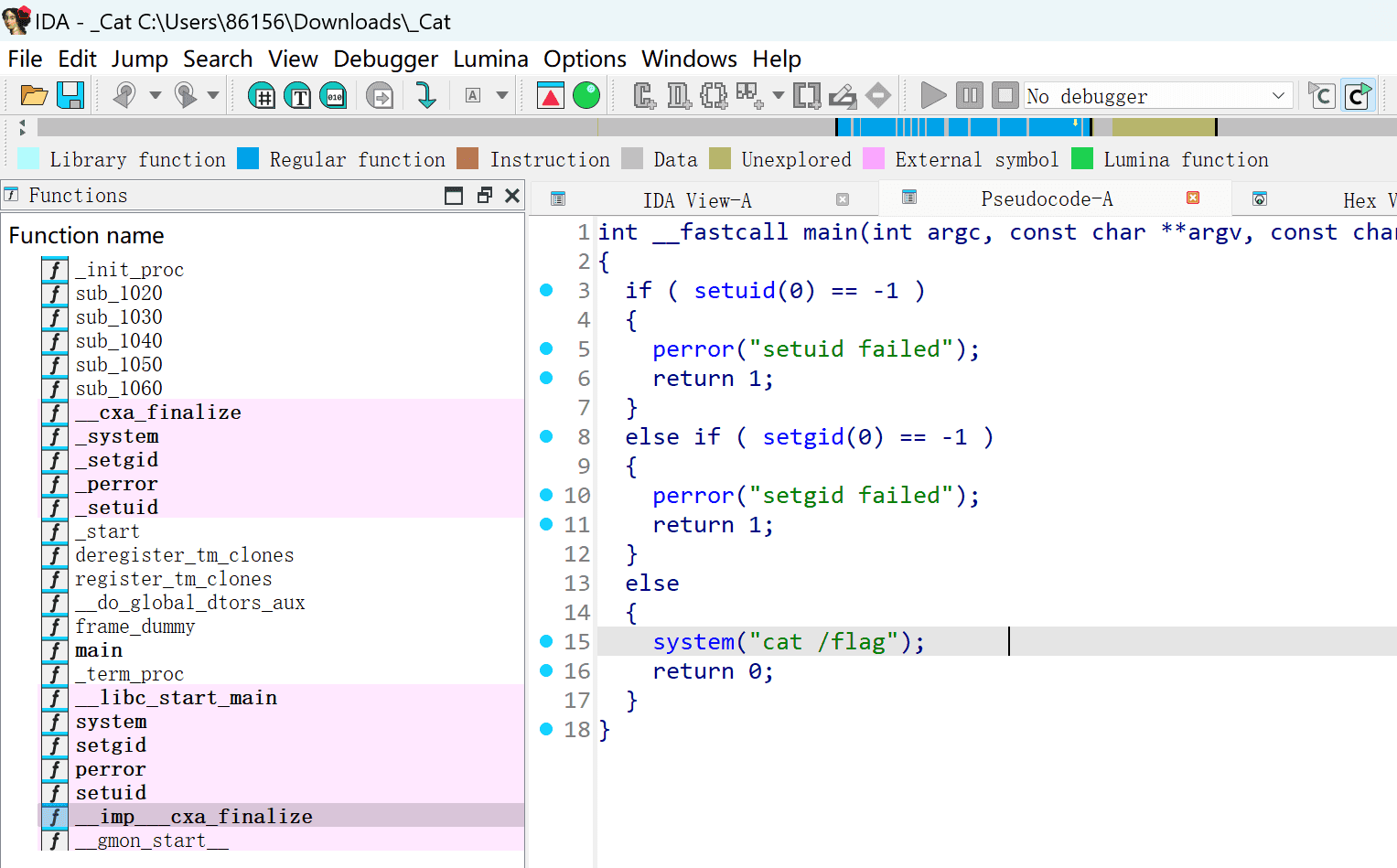 其中/.../Cat这个程序很可疑,将这个文件复制到/GinTest,再通过文件下载漏洞下载下来看看